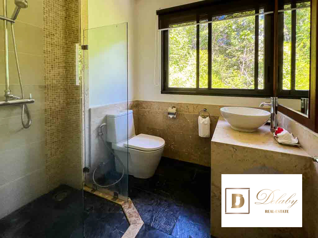 a large 102 square meter spa pool and garden with sea and jungle views.