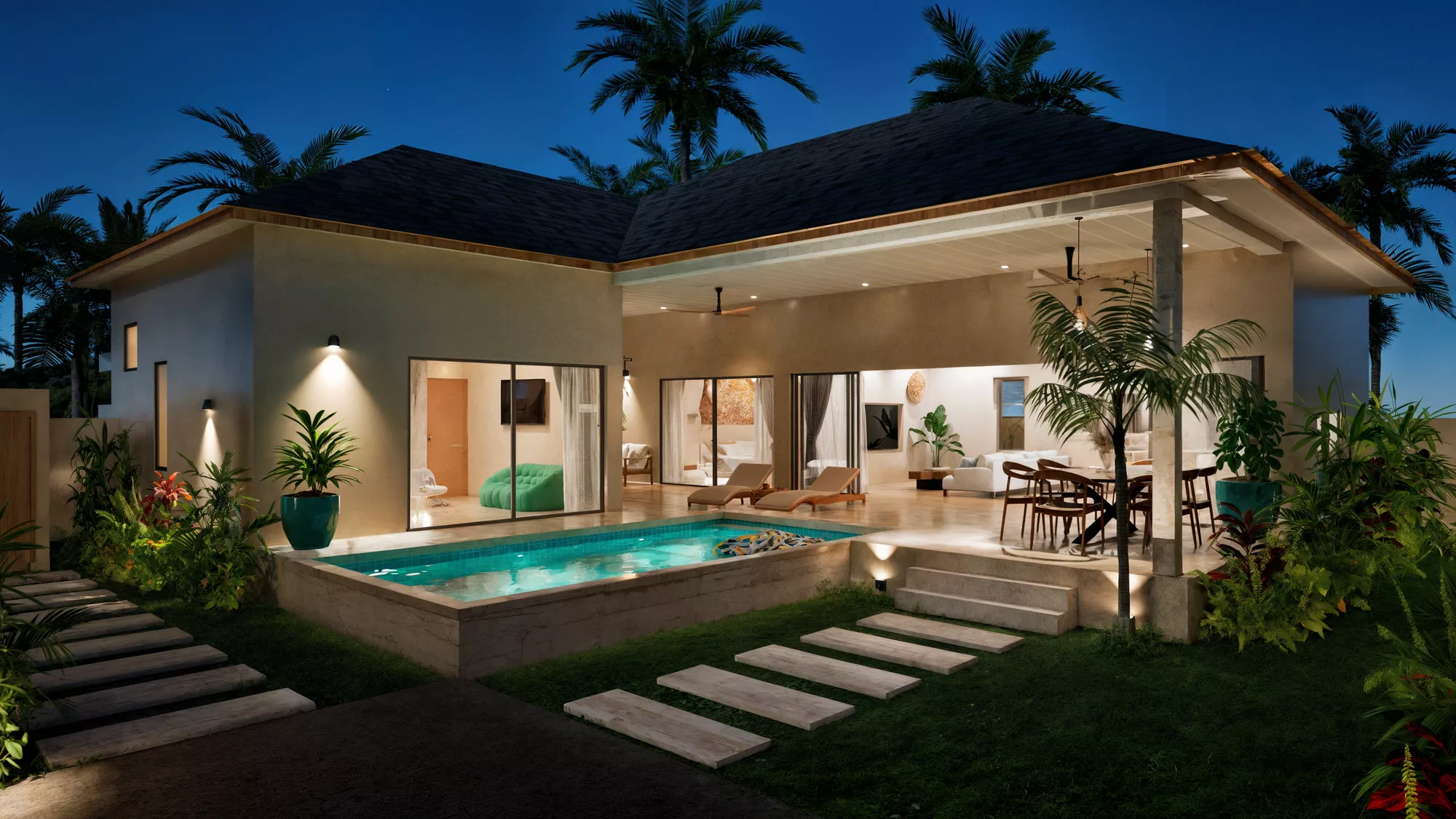 Two-bedroom villa in a gated community of ten villas.
